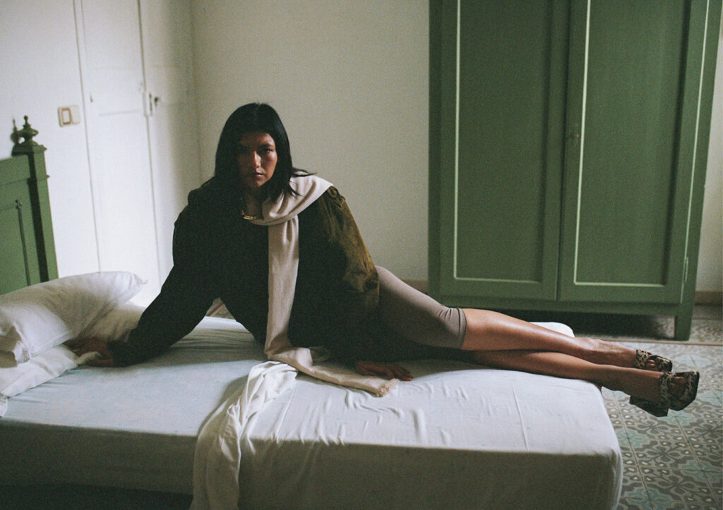 Vintage scarf, jacket by Guell, necklace from Moirai Market, vintage pants and shoes by Tama Toby. Photography by Manuel Villuendas, fashion by Marina Rebanales, Paula Biel, Virginia Crespo and Lluna Codina, hair and make up by Júlia Porto modeling by Iveth Ventura@View Management, photographer’s assistance by Cristina Ruiz.