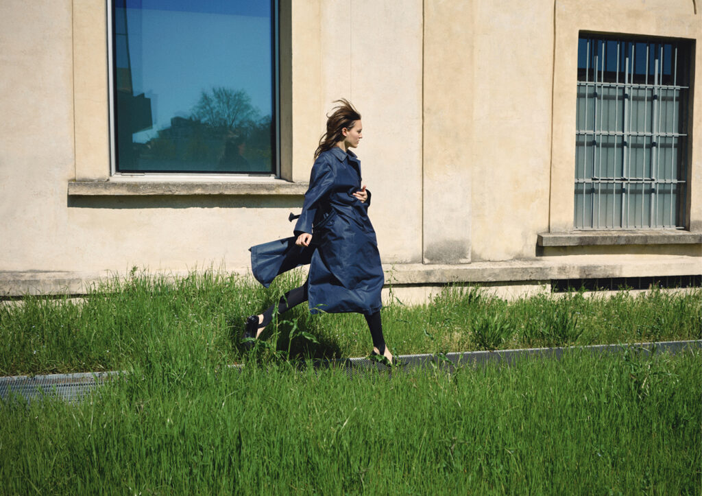 Trench coat vintage Aquascutum, pants by Roberto Cavalli, shoes by Miu Miu.