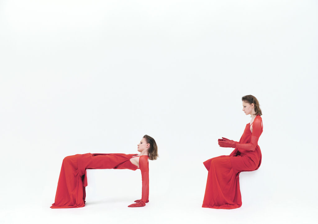 Top by Comme des Garçons archive,trousers and bolero by FETICO and gloves by Stylist’s own.