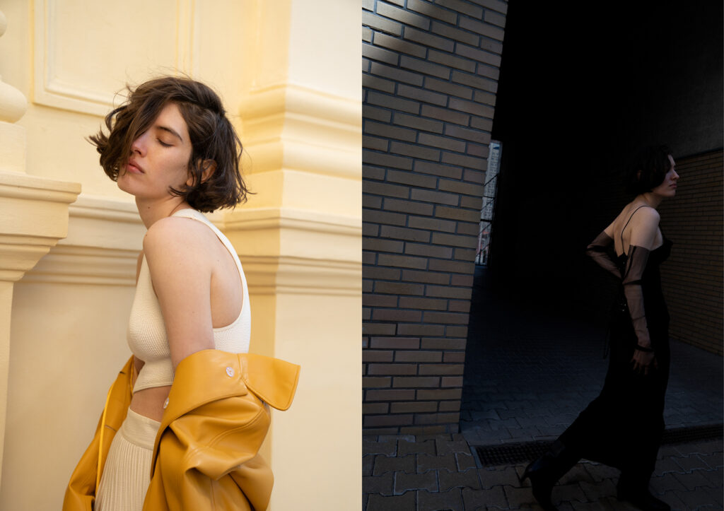 Body by Zara, coat by a LOT, skirt by Sézane, shoes by Massimo Dutti. Dress by Be & Aver, corset and gloves by Perfect Corset, shoes by Massimo Dutti.